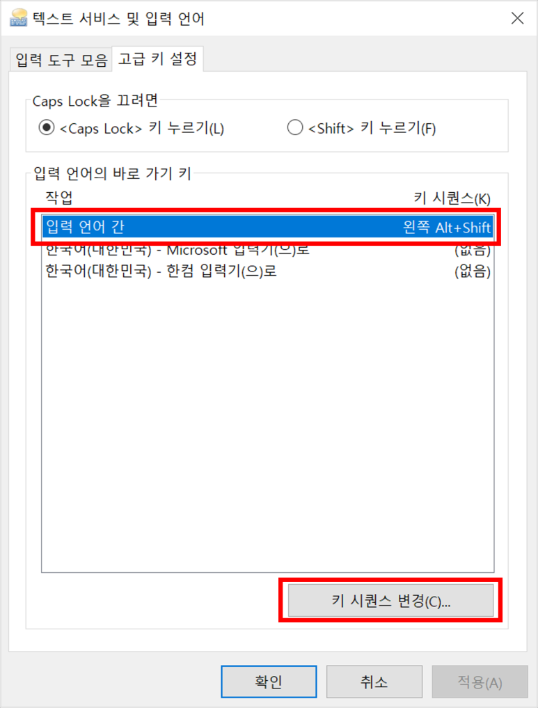 그래서 이번에는 자판 배열을 전환하는 방법과 자판 배열 전환 단축키를