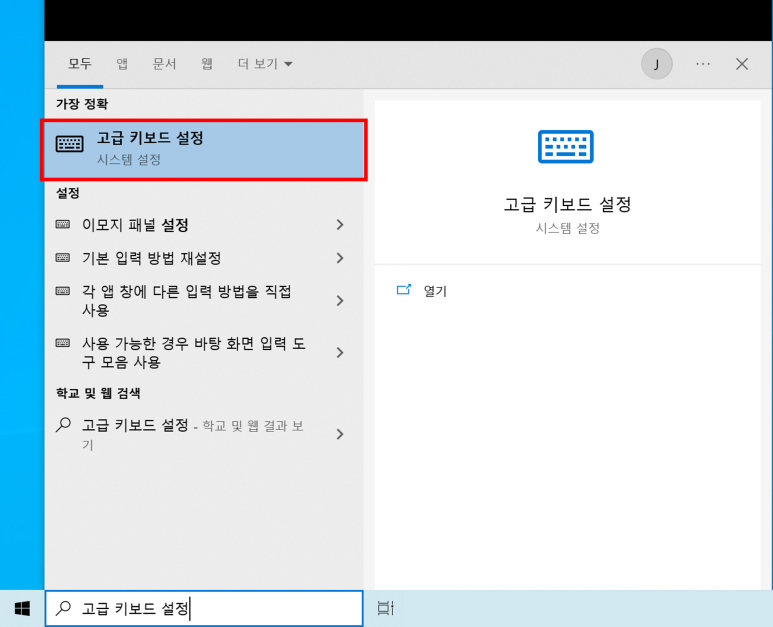 1. '시작' 아이콘 옆에있는 검색창에 '고급 키보드 설정' 검색