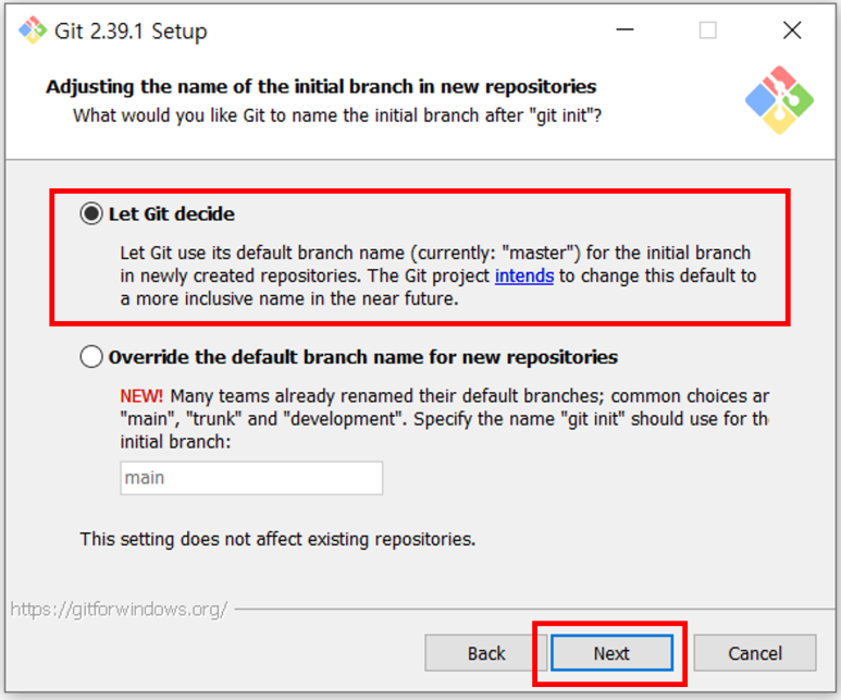 - 필자는 Git에서 기본으로 세팅된 정보를 바탕으로 설치를 진행