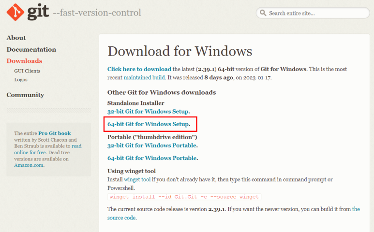 - 2023년 1월 26일 기준 Git 버전은 2.39.1