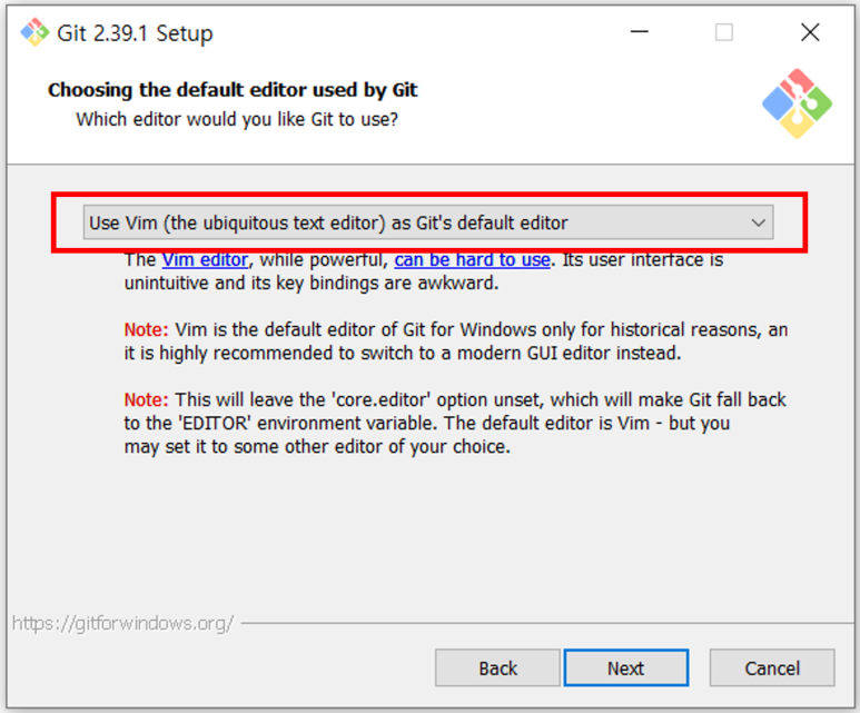 14. git을 설치할 때 기본으로 사용할 에디터 선택