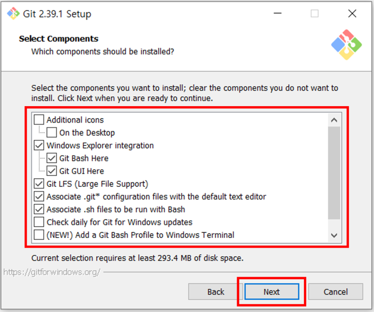 10. Git 설치 시 필요한 Components(구성요소) 선택