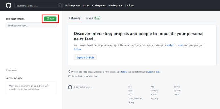 1. Github에 로그인 후 왼쪽 상단에 있는 'New' 클릭