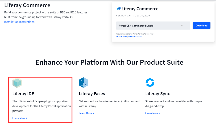 4) Community Downloads 페이지에서 스크롤을 내려 Liferay IDE(통합 개발 환경) 클릭
