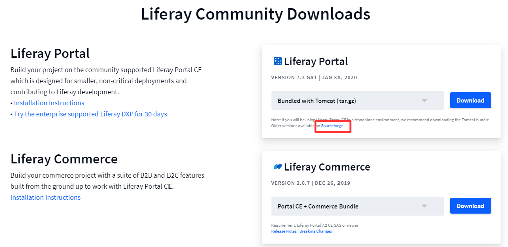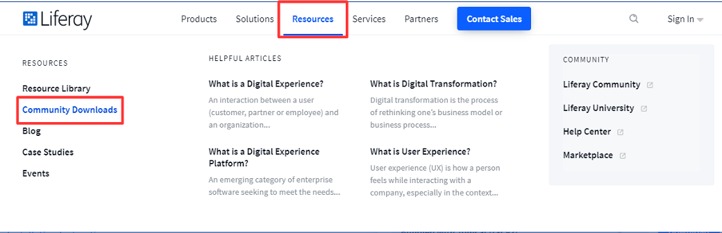 1) liferay.com 사이트 > Resource > Community Downloads 메뉴를 선택