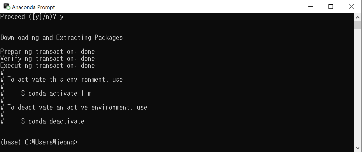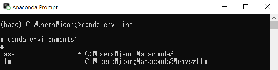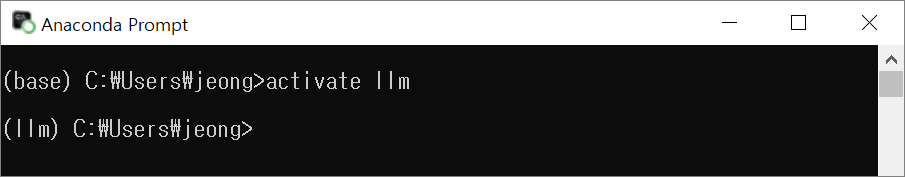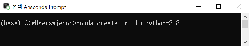 아나콘다를 이용해서 "llm"이라는 이름(-n)의 가상환경을 만들거에요.