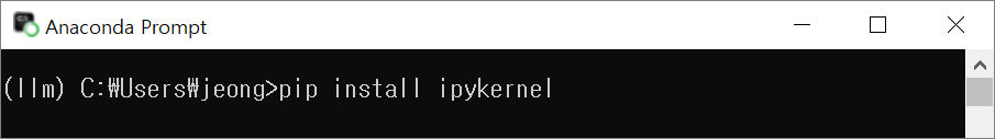 처음에 만든 가상환경(llm)에 커널(ipykernel)을 연결해야 주피터 노트북(Jupyter notebook)을 사용할 수 있어요.