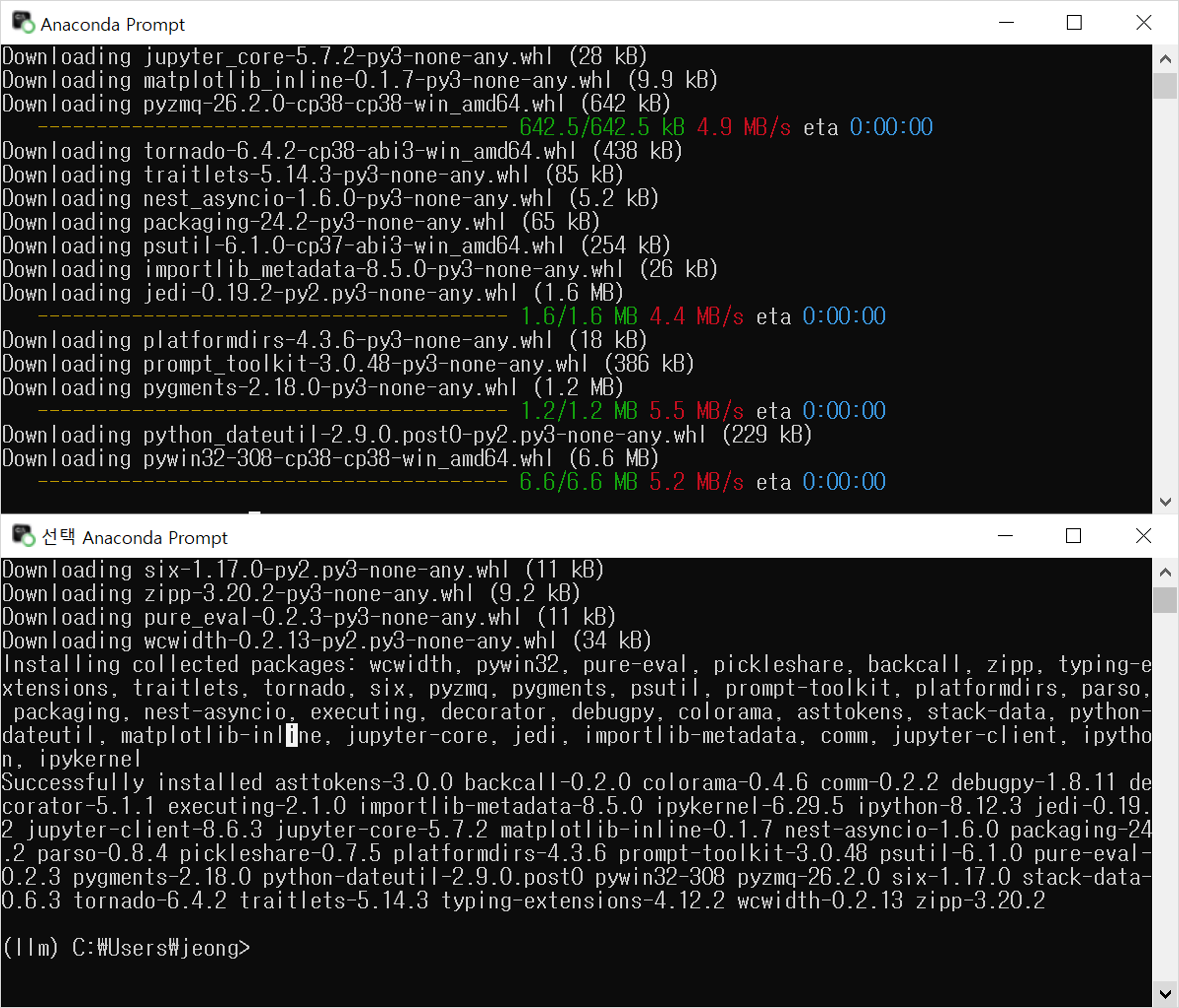 ipykernel 설치 명령어를 실행하면 위의 이미지와 같이 설치 과정을 확인할 수 있어요.