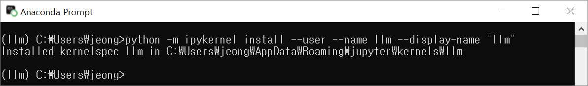 > python -m ipykernel install --user --name llm --display-name "llm"