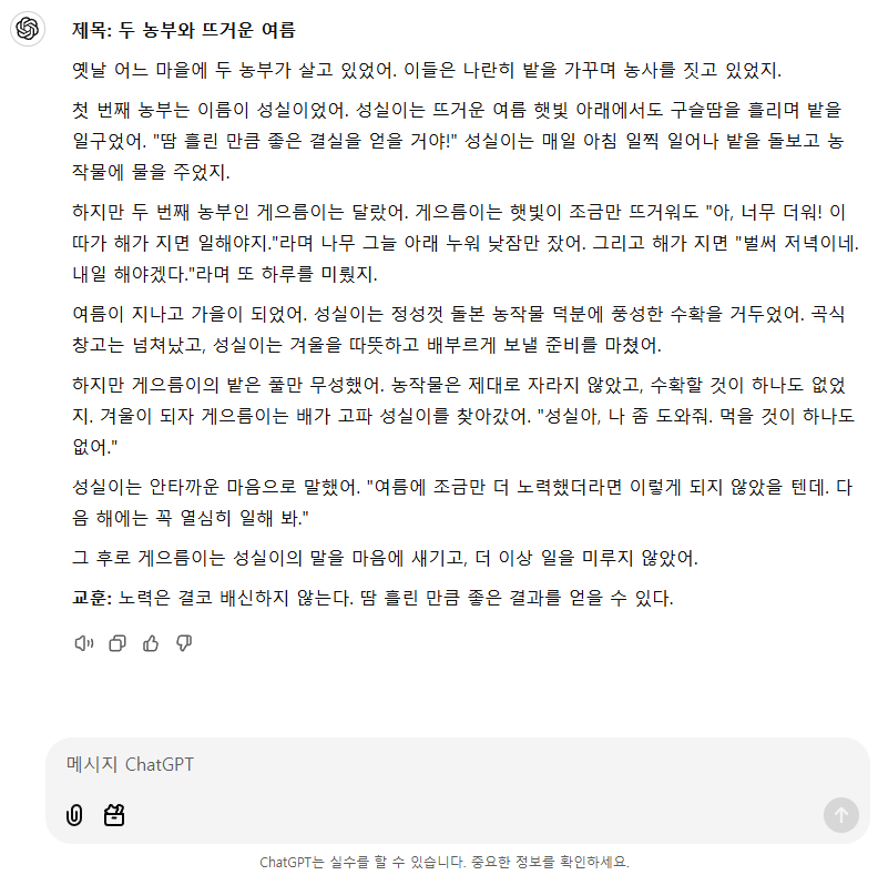 GPT 모델이 생성형 AI니까 동화도 잘 만들어 주겠죠?