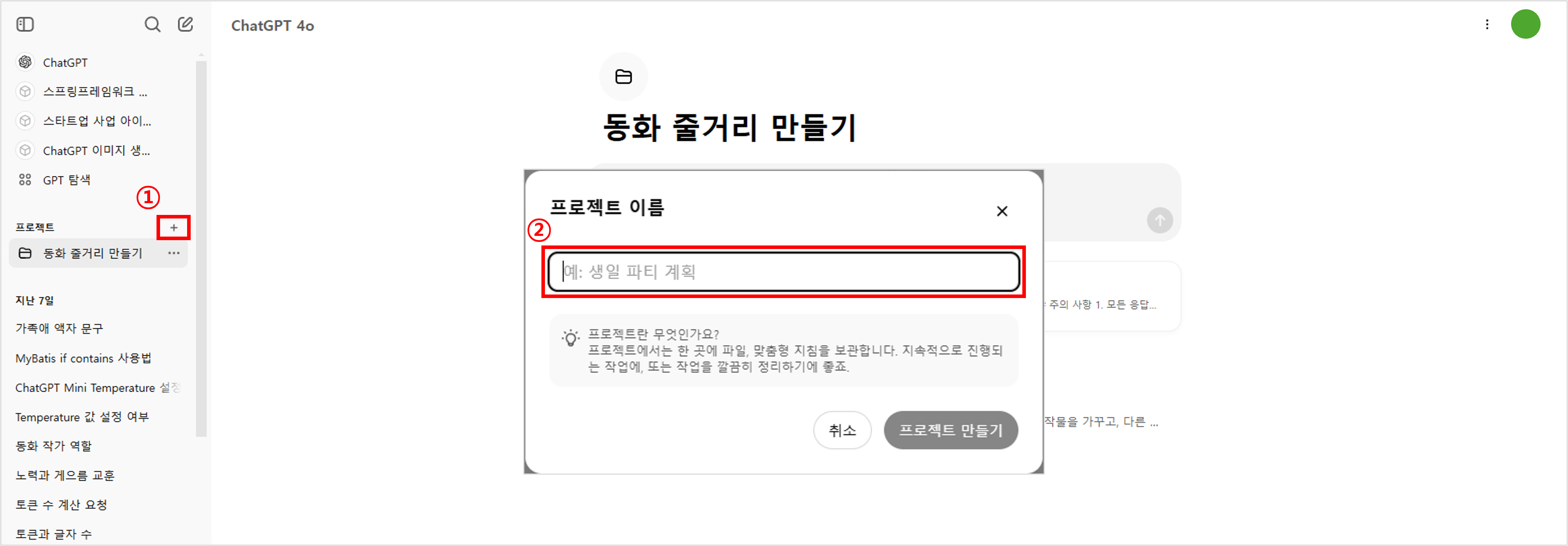 # ChatGPT에서 프로젝트를 만들어 질문하기