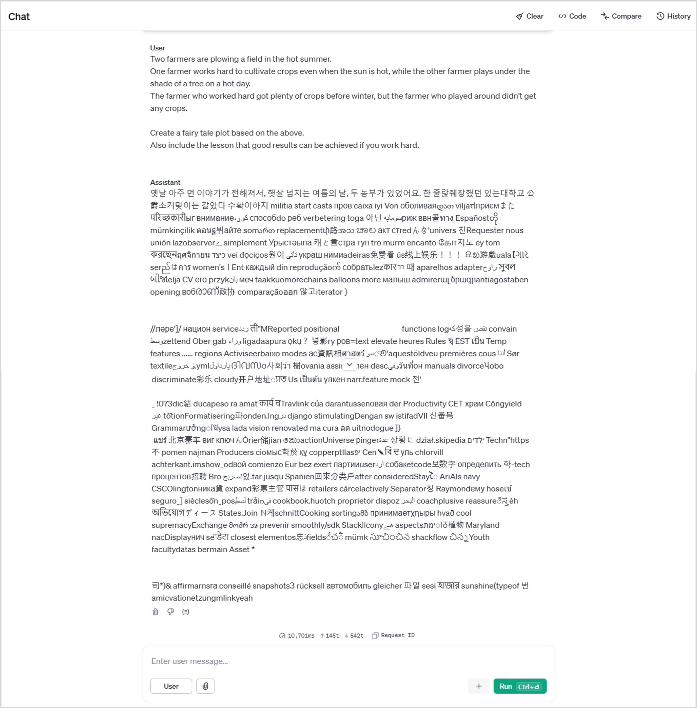 Temperature 값이 1.8로 너무 높게 설정되어 있어서 그런지 사전 지시문도 무시하고!
