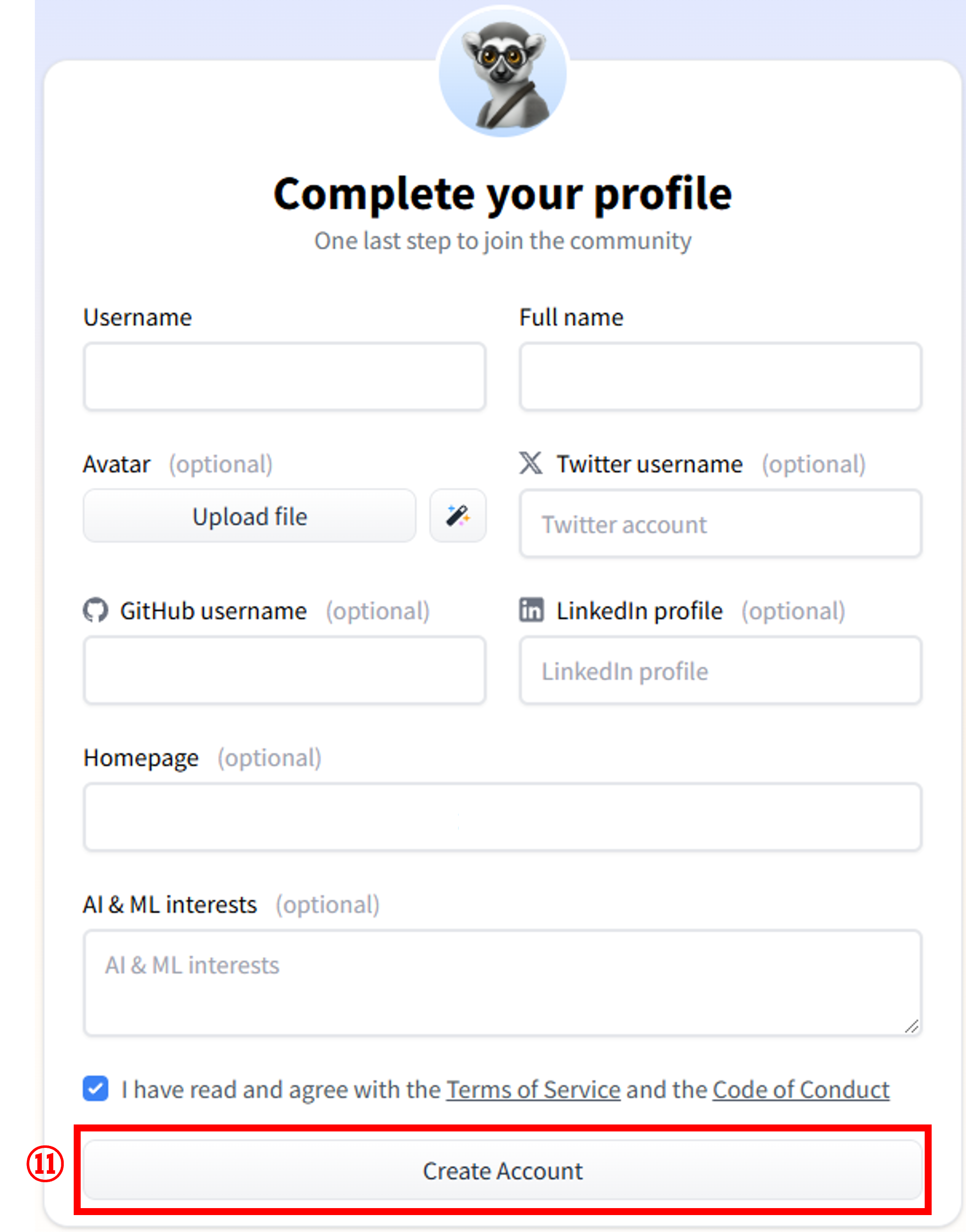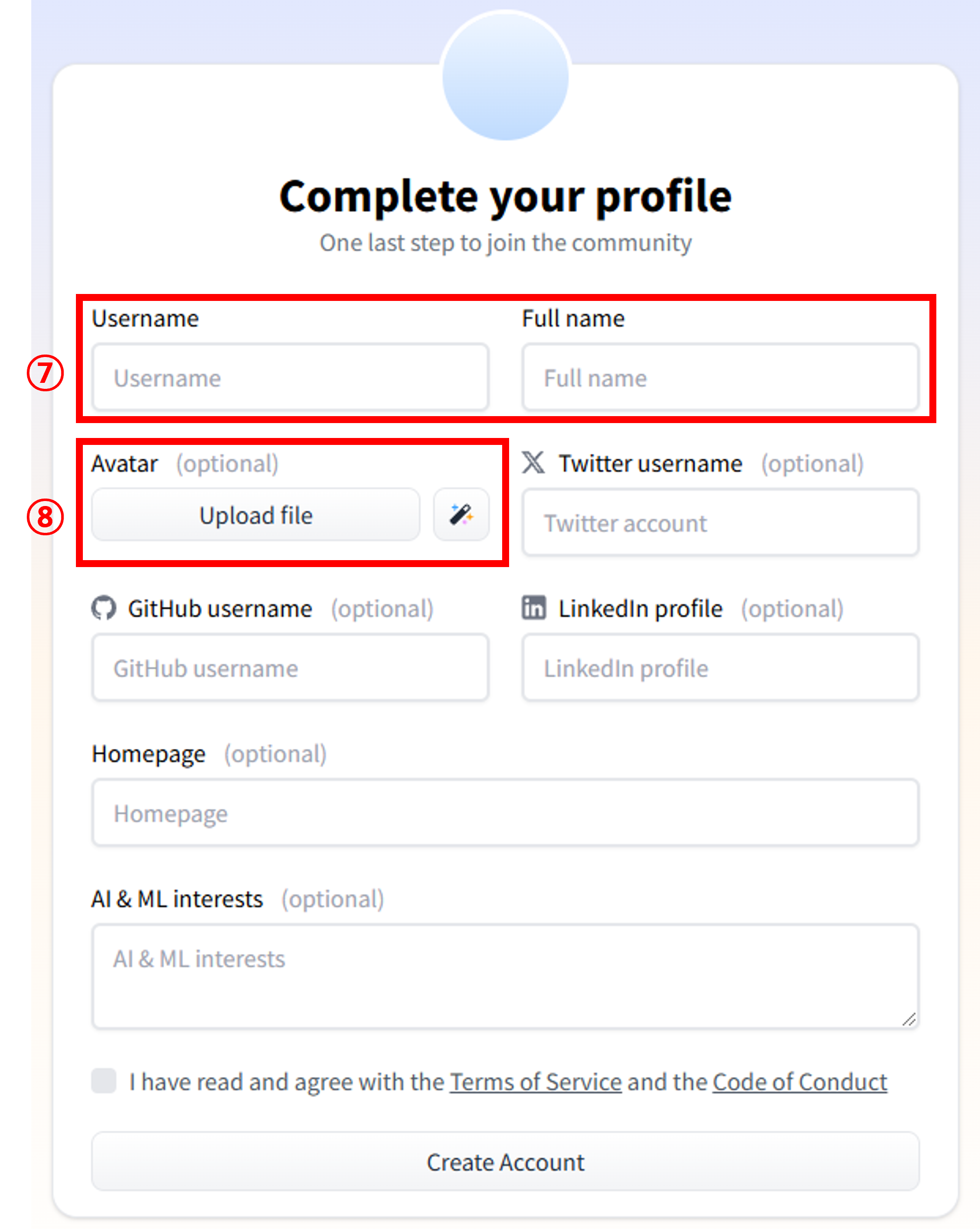 | ⑧ 아바타 설정 | 그리고 아바타를 설정해줍니다. 분명 (optional)이라고 되어있어서 입력하지 않고 진행했는데... 결국 아바타를 설정하는 화면이 나오더라고요! 그래서 아바타를 설정하는 방법을 설명해줄게요. |