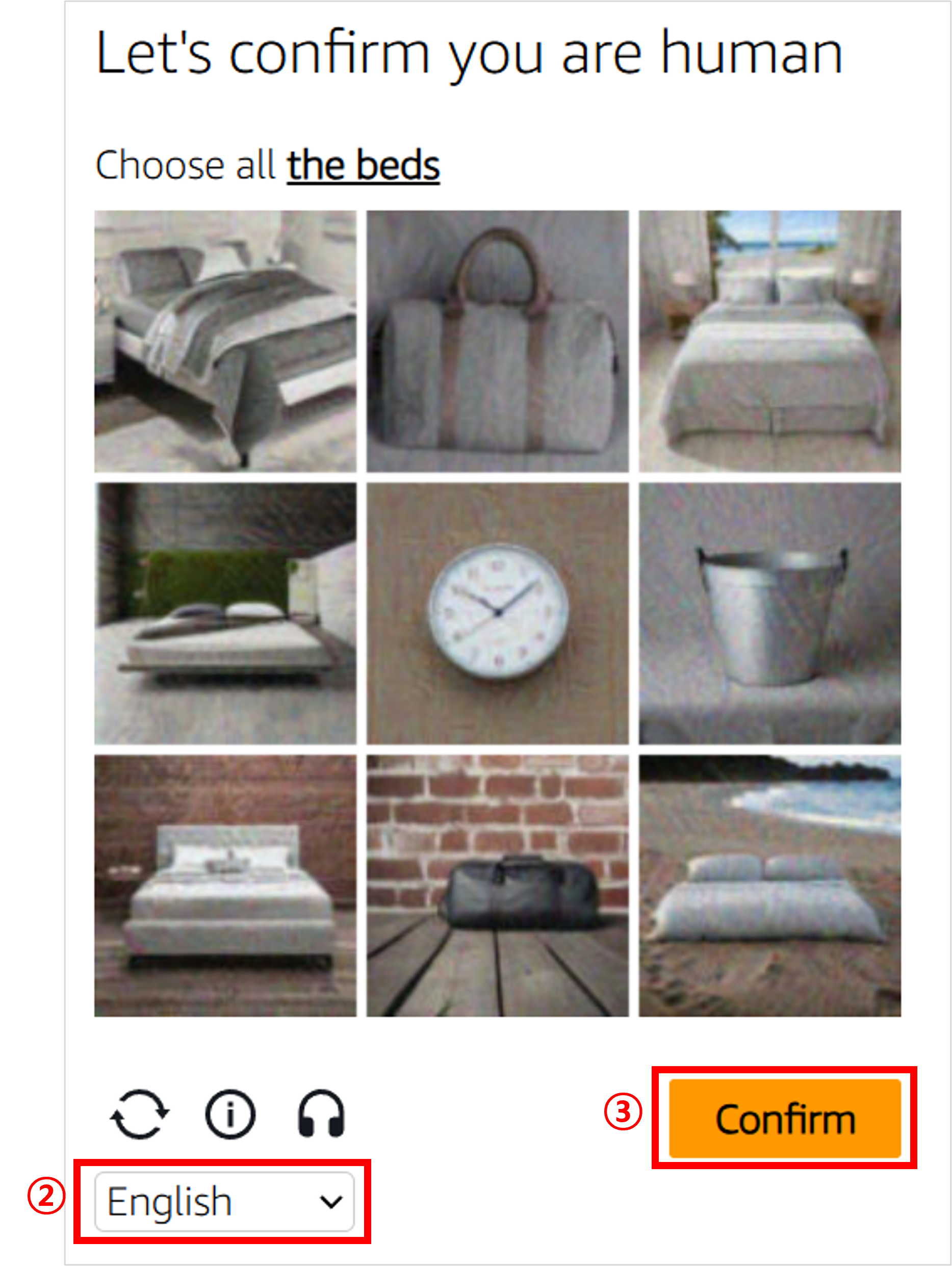 | ② 언어 선택 | Human 인증을 진행하기 위한 언어를 선택해주세요. 아직 한글은 지원되지 않아서 저는 영어로 선택했어요. 그리고 상단에 있는 이미지를 클릭해서 Human 인증을 진행해주세요. |