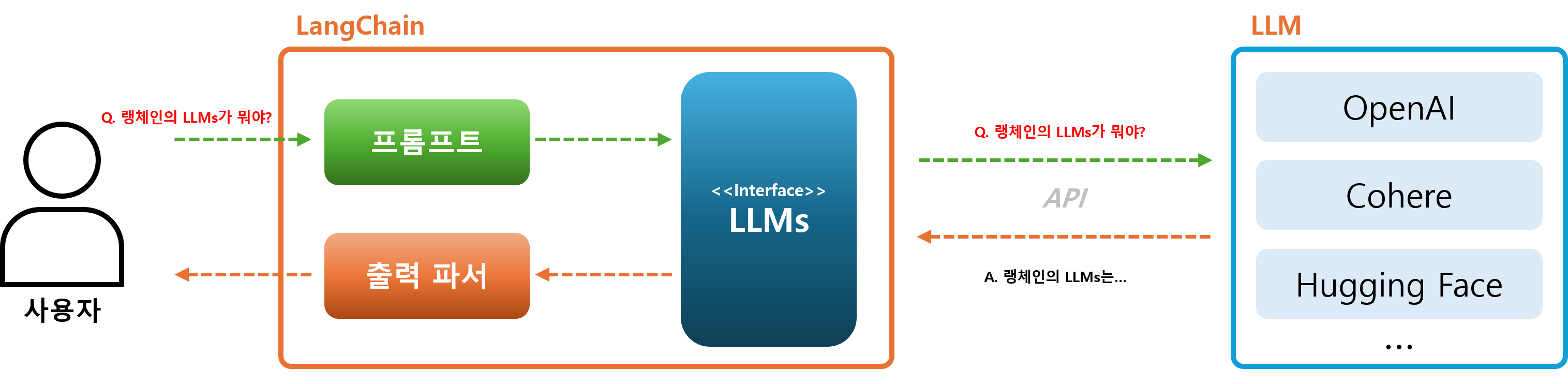 랭체인은 OpenAI, Cohere, Hugging Face 등 다양한 모델 공급자(공급업체)와 상호작용할 수