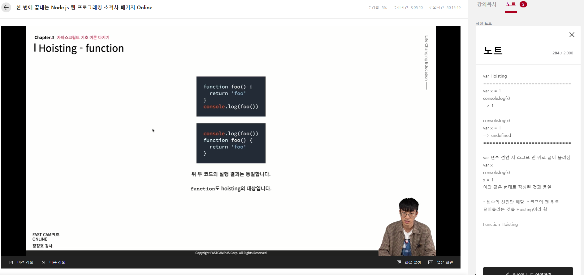 Javascript의 Hoisting과 Scope, 그리고 Closure의 개념에 대해 강의를 들었다.