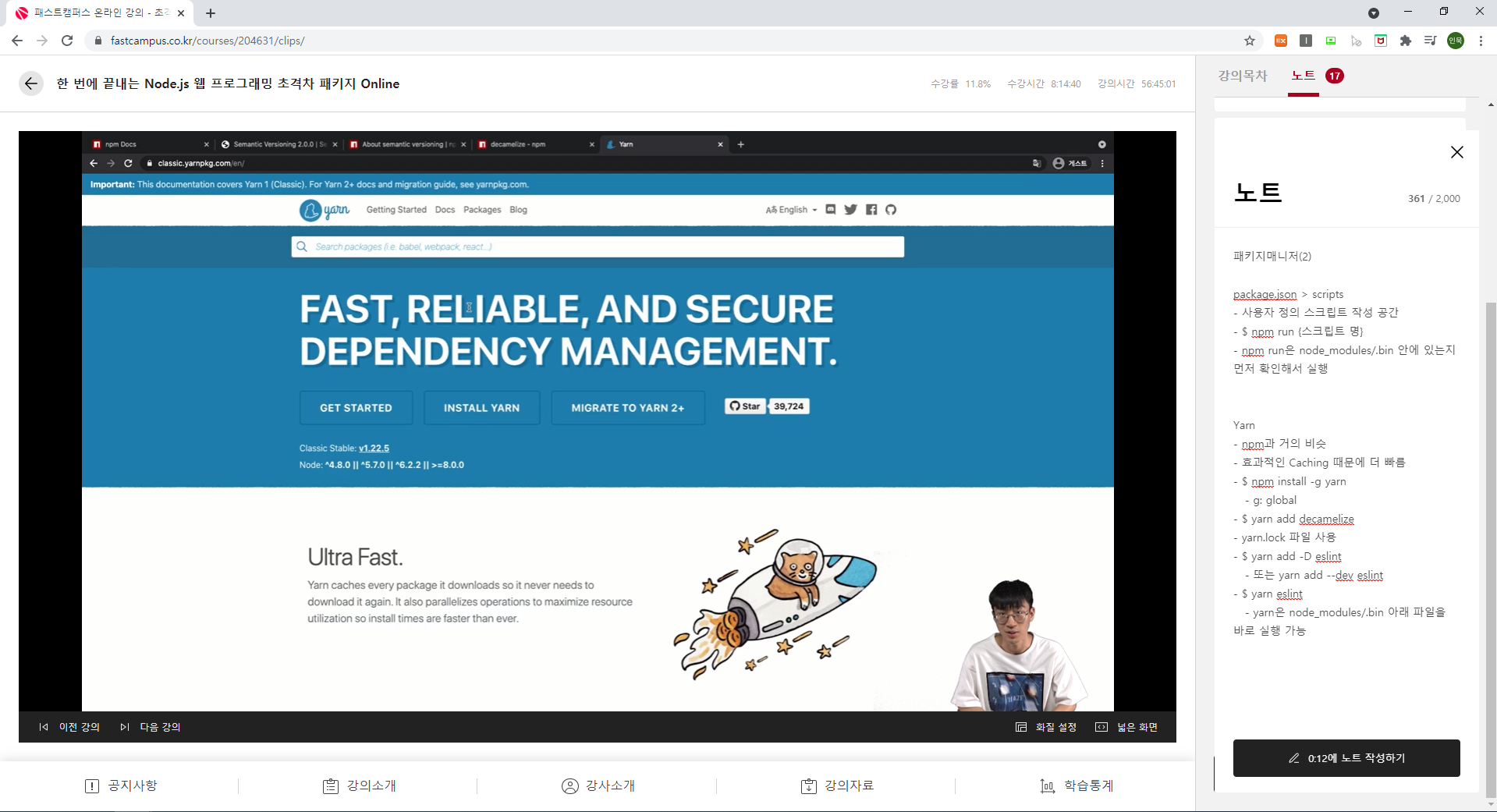 이 강의에서 소개하는 Package Manager는 NPM과 Yarn으로,