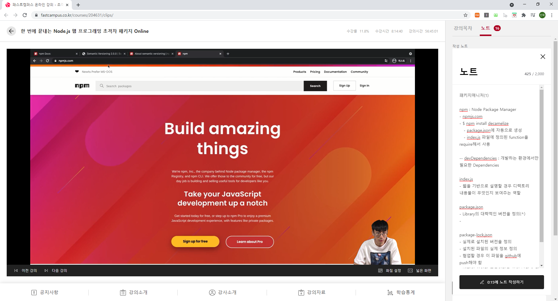추가적으로 NPM에 대해 학습하고자 할 경우 http://npmjs.com 사이트의 Document를 참고하면 도움이 많이 될 것 같다.