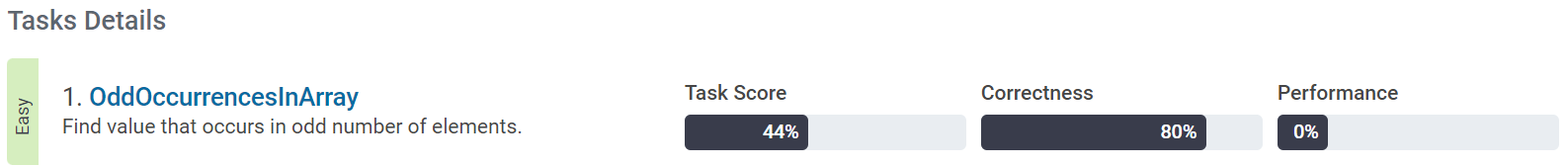 Codility에서 정확성과 퍼포먼스를 통해 Score를 채점해준다.