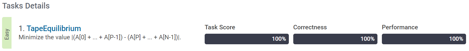 The difference between the two parts is the value of: |(A[0] + A[1] + ... + A[P − 1]) − (A[P] + A[P + 1] + ... + A[N − 1])|